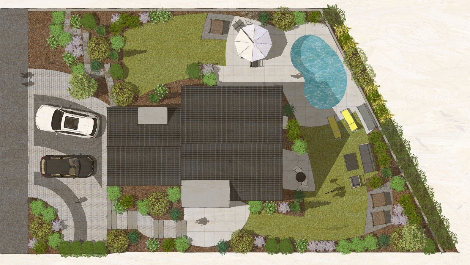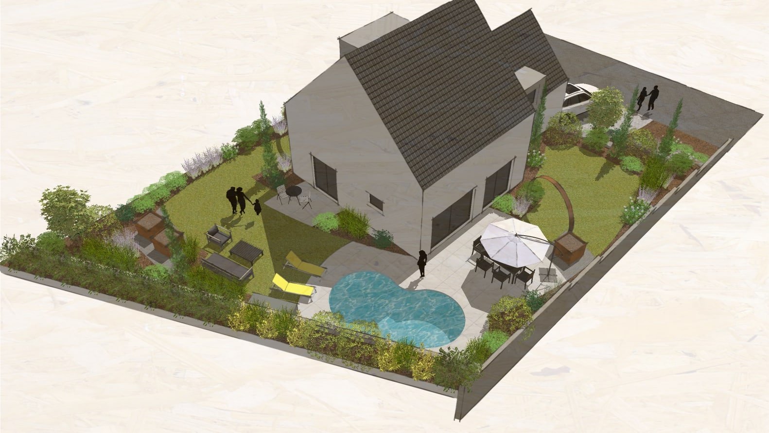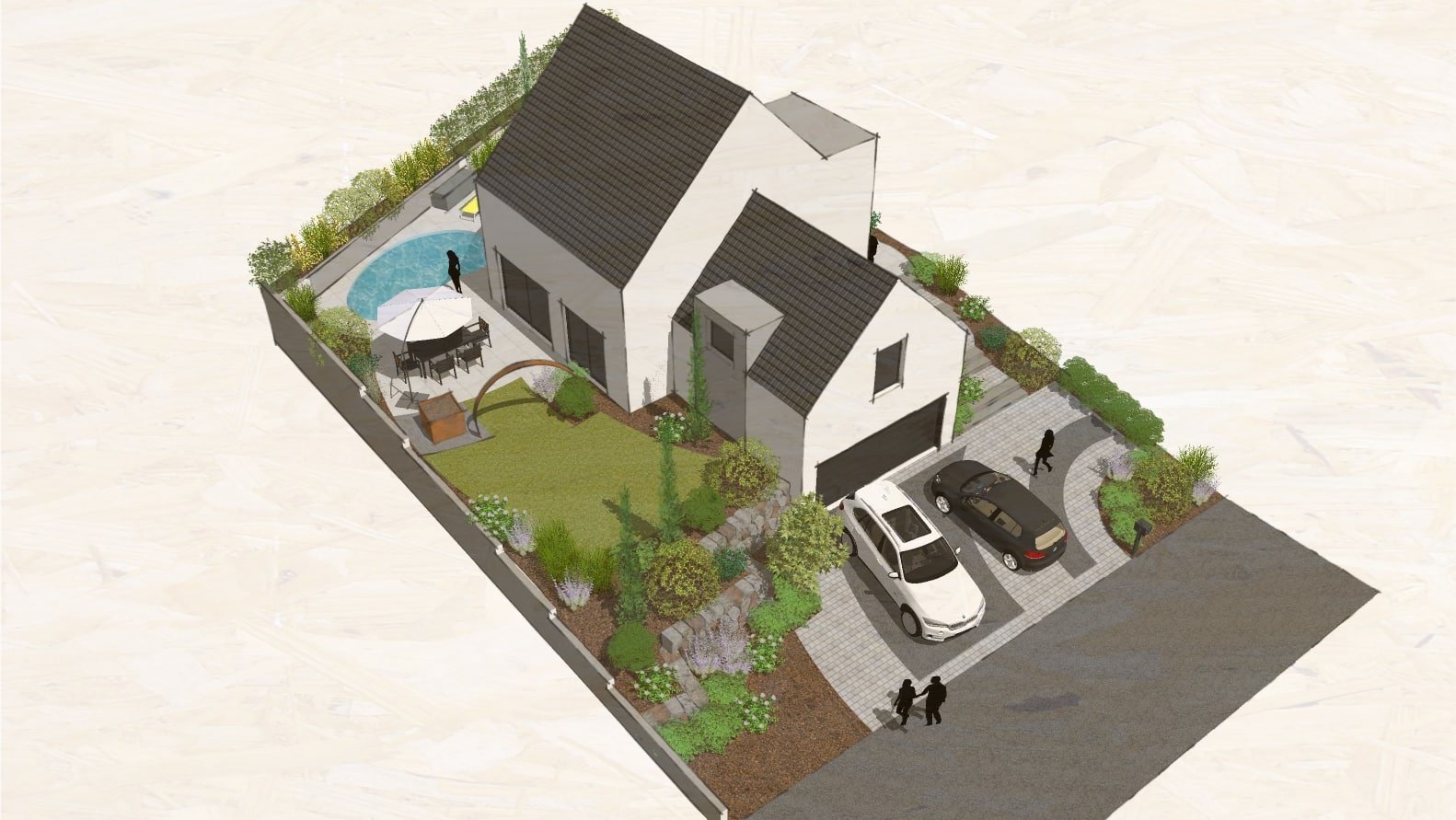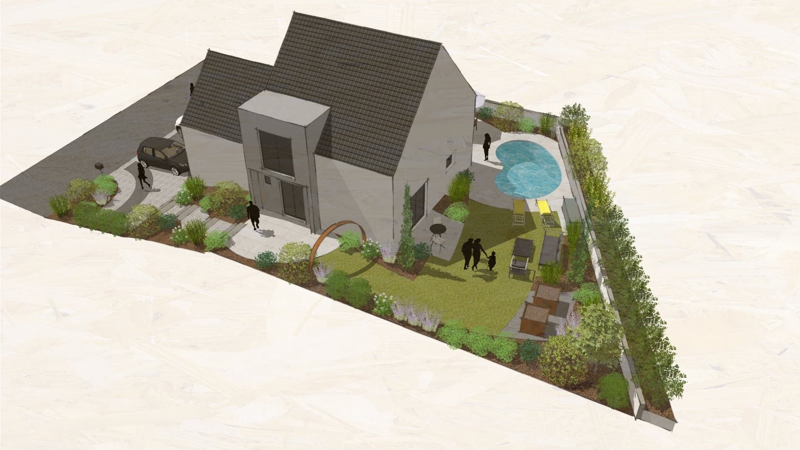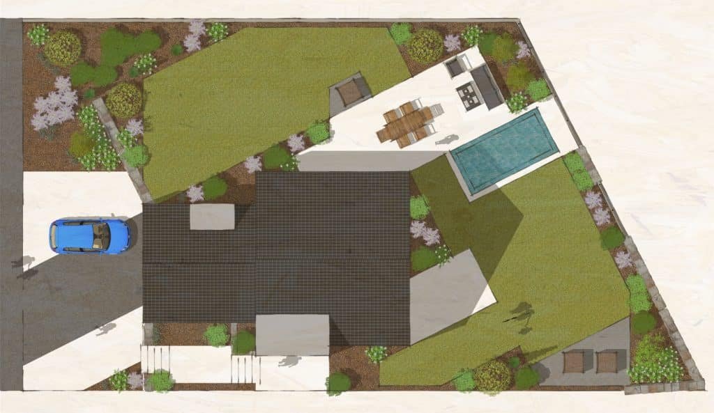 Accès, terrasses, murets, potager, piscine, végétal et clôture sont à penser, imaginer, proposer…