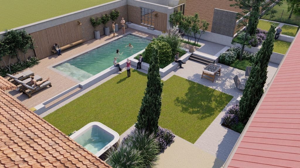 Intégrer des pratiques écologiques, comme la récupération d’eau de pluie et l’utilisation de matériaux recyclés, limiter l’impact de la bétonisation, … contribue à un environnement plus durable et respectueux de la nature